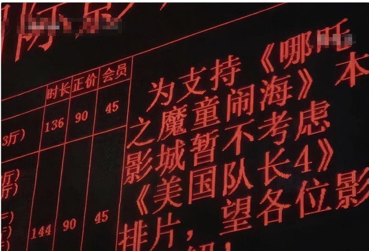 既然国外的影院都这么“热情款待”了,咱们国内的影院老板当然也不能甩掉《美队4》了。一些能自己掌控排片的影院直接发出声明:“为了支持《哪吒2》,暂时不打算放映《美国队长4》!”