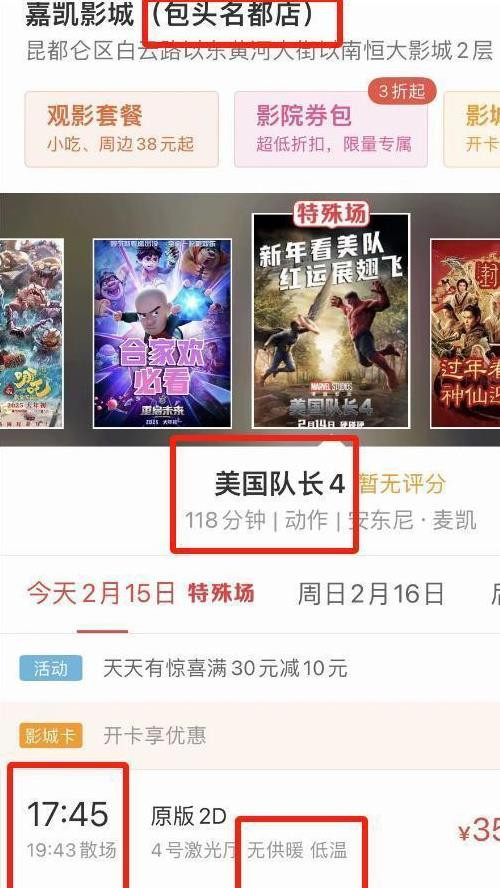 这就有点儿过于用心了,咱们换个角度,瞧瞧那些自然一些的影院吧。内蒙古那家电影院给《美队4》的评分,乍一看也没啥毛病,票价还挺公道的。